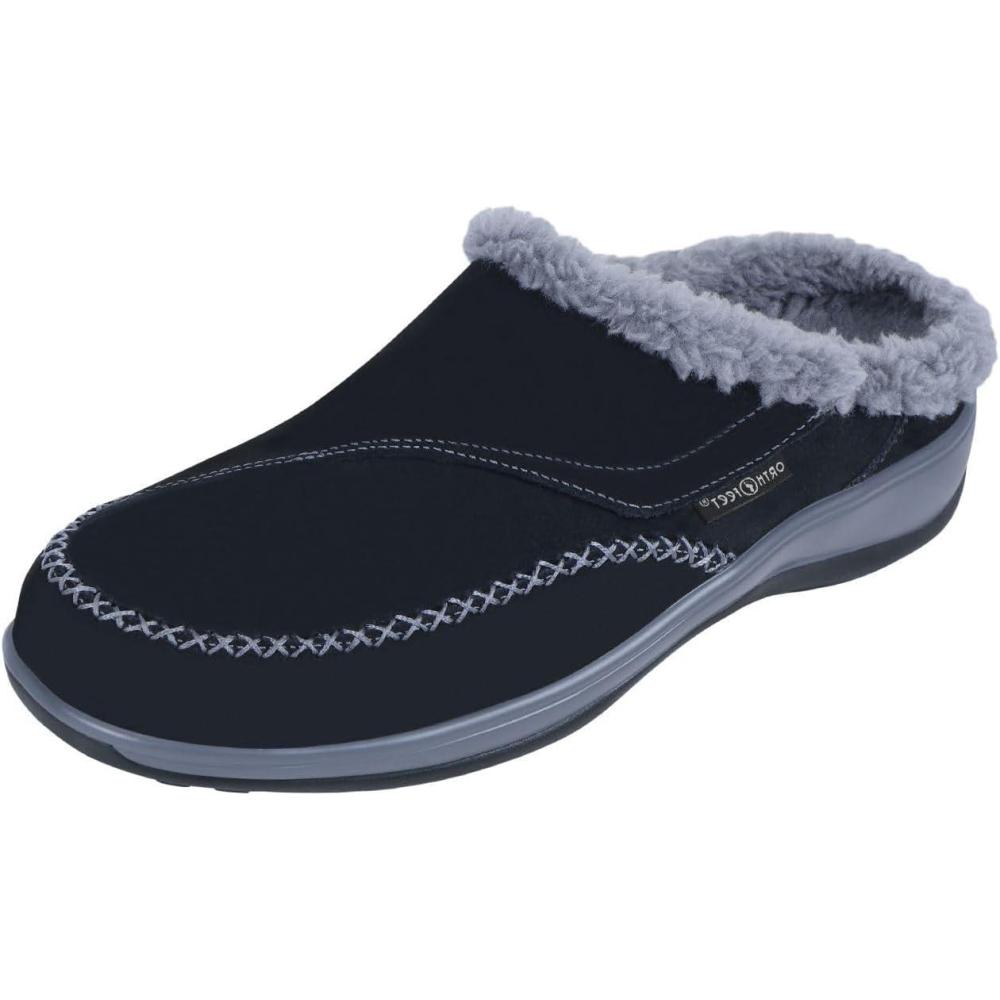 Orthofeet Women’s Orthopedic Faux Fur Lined Charlotte Slippers(Black)
